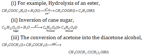 (7) Acid-base catalysis: According to the Arrhenius and Ostwald H+ or H- ion act as a catalyst.