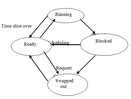 6. When a running process complete its time slice or makes an IO request its PCB is removed from the ready queue to the blocked/swapped-out list