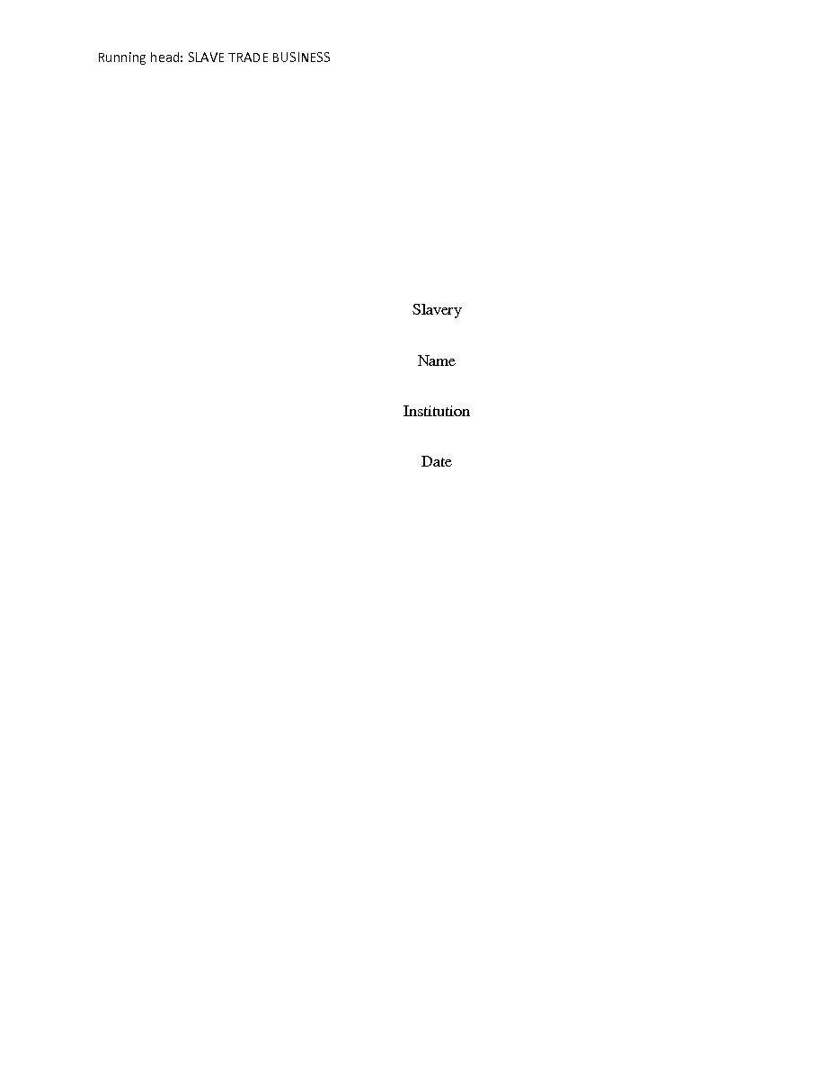 "Running head: SLAVE TRADE BUSINESSSlaveryNameInstitutionDate 2SLAVERY TRADE BUSINESSSlavery IntroductionWhile researching books published about slavery, I discovered a large number of authorswho have published books about slavery.Regarding that the ..