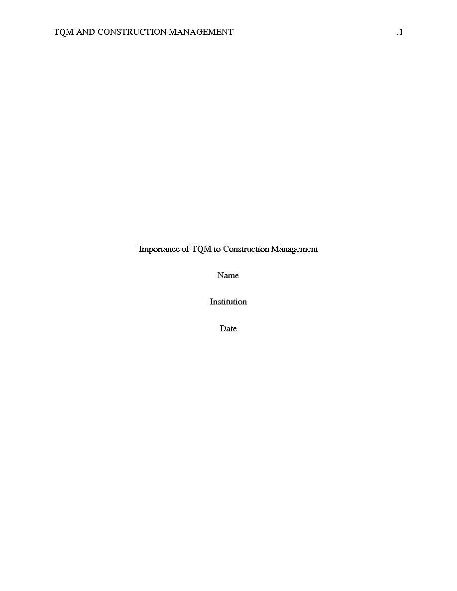 "TQM AND CONSTRUCTION MANAGEMENT .2Table of ContentsIntroduction ..................................................................................................................................... 3Problem Statement ..................................