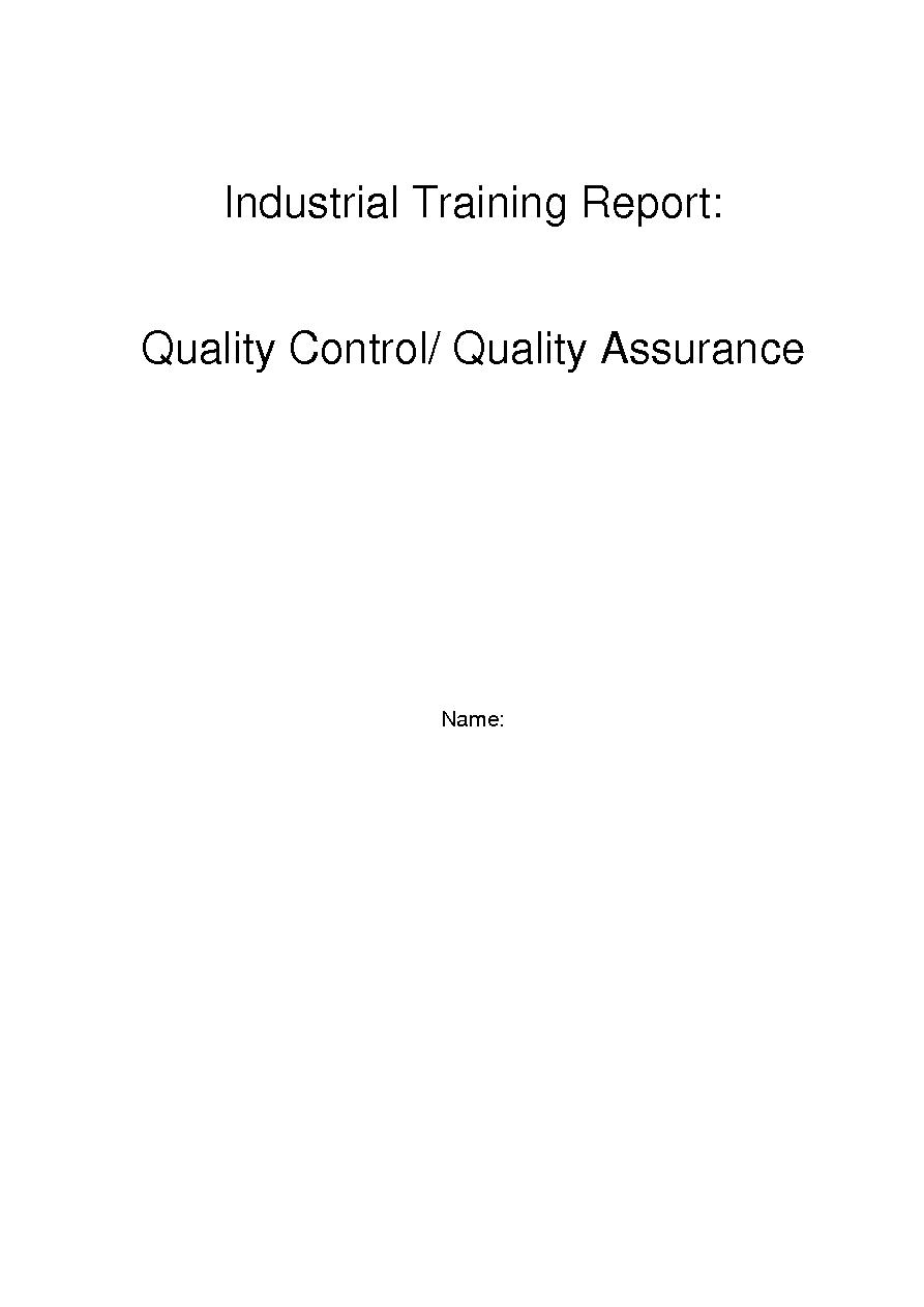 "Industrial Training Report:Quality Control/ Quality AssuranceName:Contents with page numbersContent…………………………………………………………………………...…………Title Page………………………………………………………………………………..….……. Acknowledgement……………………………………….………………………………..……. Contents with page..