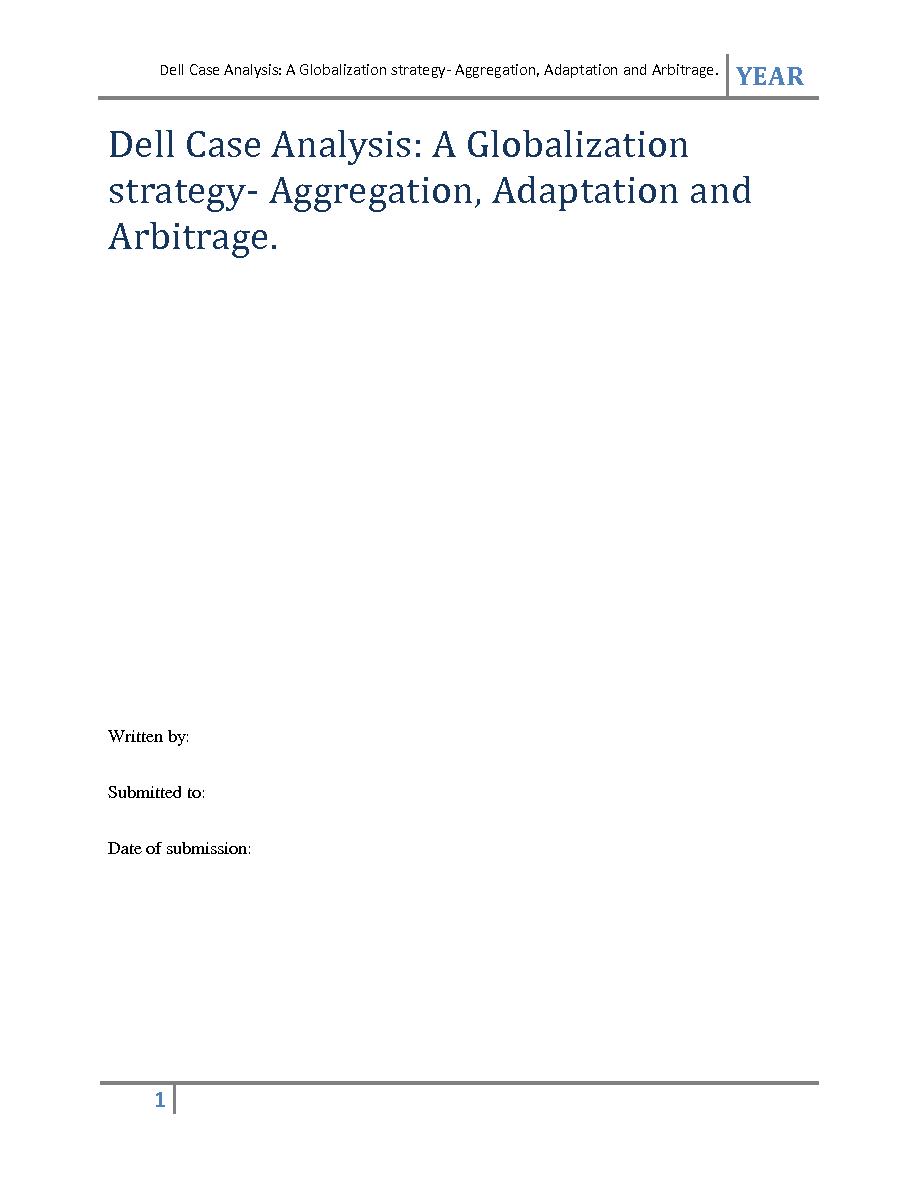 "Dell Case Analysis: A Globalization strategy- Aggregation, Adaptation and Arbitrage.YEARDell Case Analysis: A Globalizationstrategy- Aggregation, Adaptation andArbitrage.Written by:Submitted to:Date of submission:1 Dell Case Analysis: A Globalizatio..