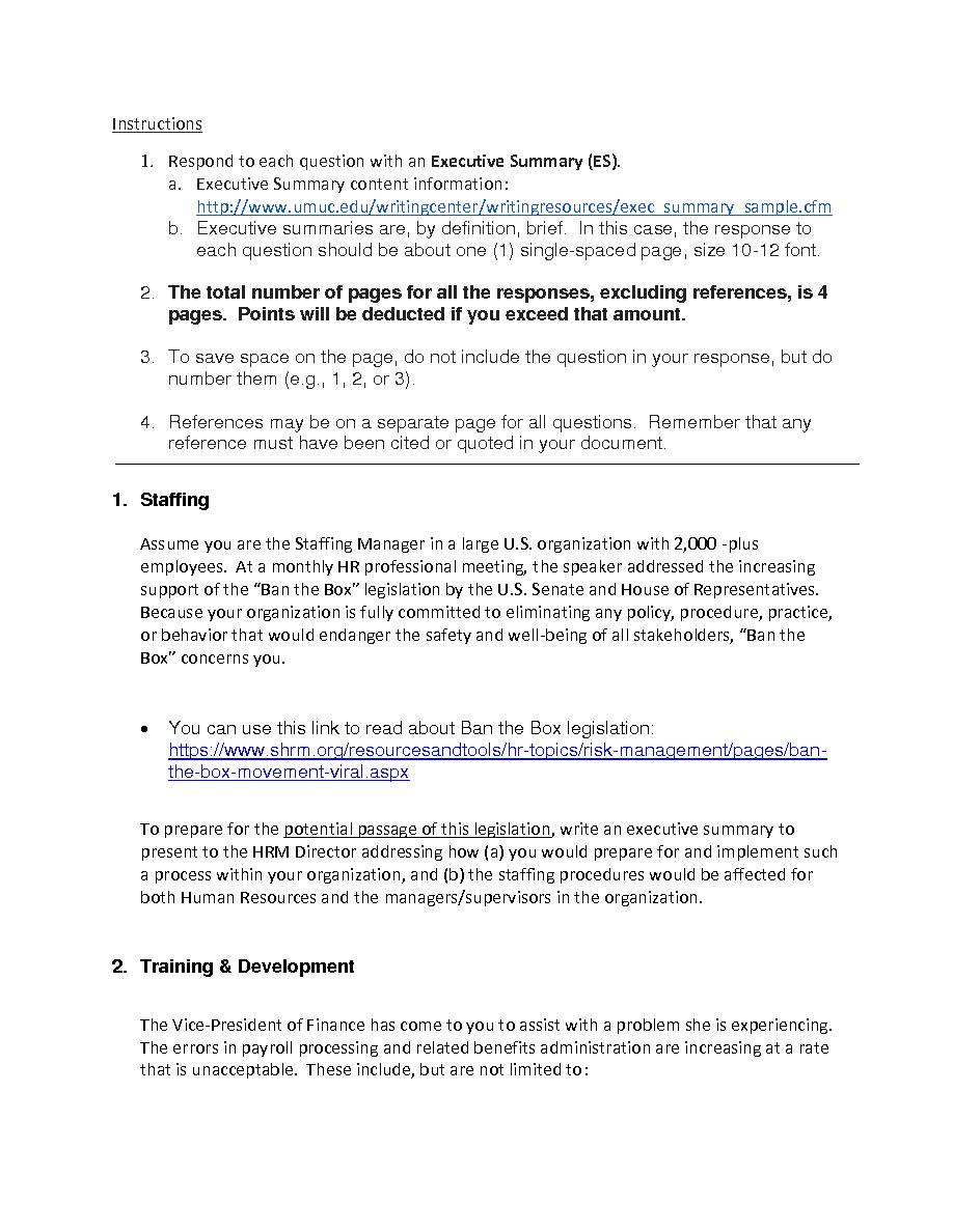"Instructions1. Respond to each question with an Executive Summary (ES). a. Executive Summary content information: http://www.umuc.edu/writingcenter/writingresources/exec_summary_sample.cfmb. Executive summaries are, by definition, brief.In this case..
