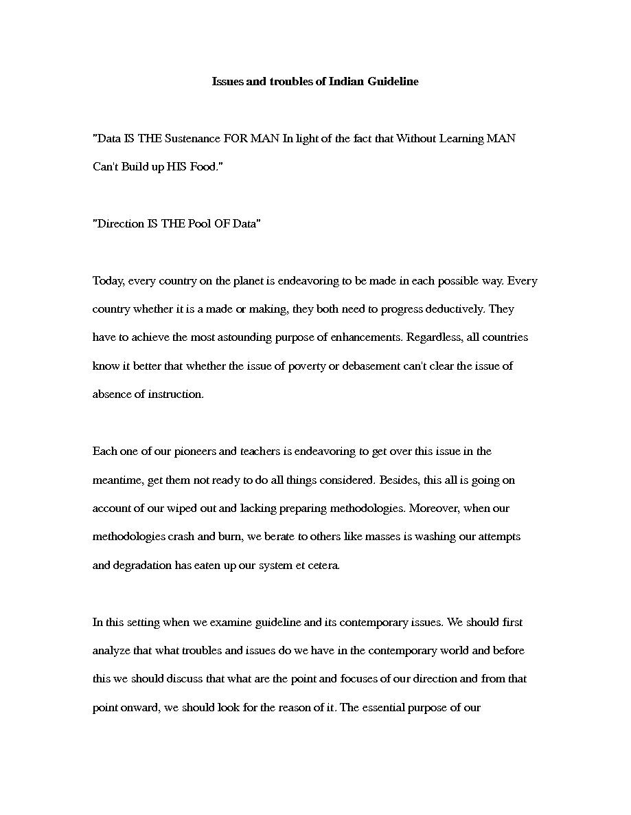 "Issues and troubles of Indian Guideline"Data IS THE Sustenance FOR MAN In light of the fact that Without Learning MANCan't Build up HIS Food." "Direction IS THE Pool OF Data" Today, every country on the planet is endeavoring ..