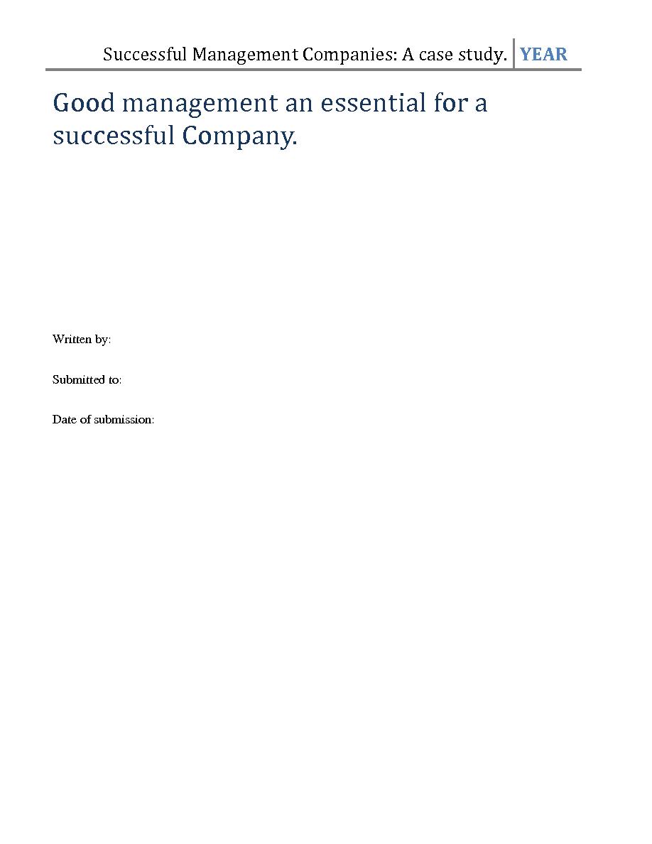"Successful Management Companies: A case study. YEARGood management an essential for asuccessful Company.Written by:Submitted to:Date of submission: Successful Management Companies: A case study. YEARContentsIntroduction: ..............................
