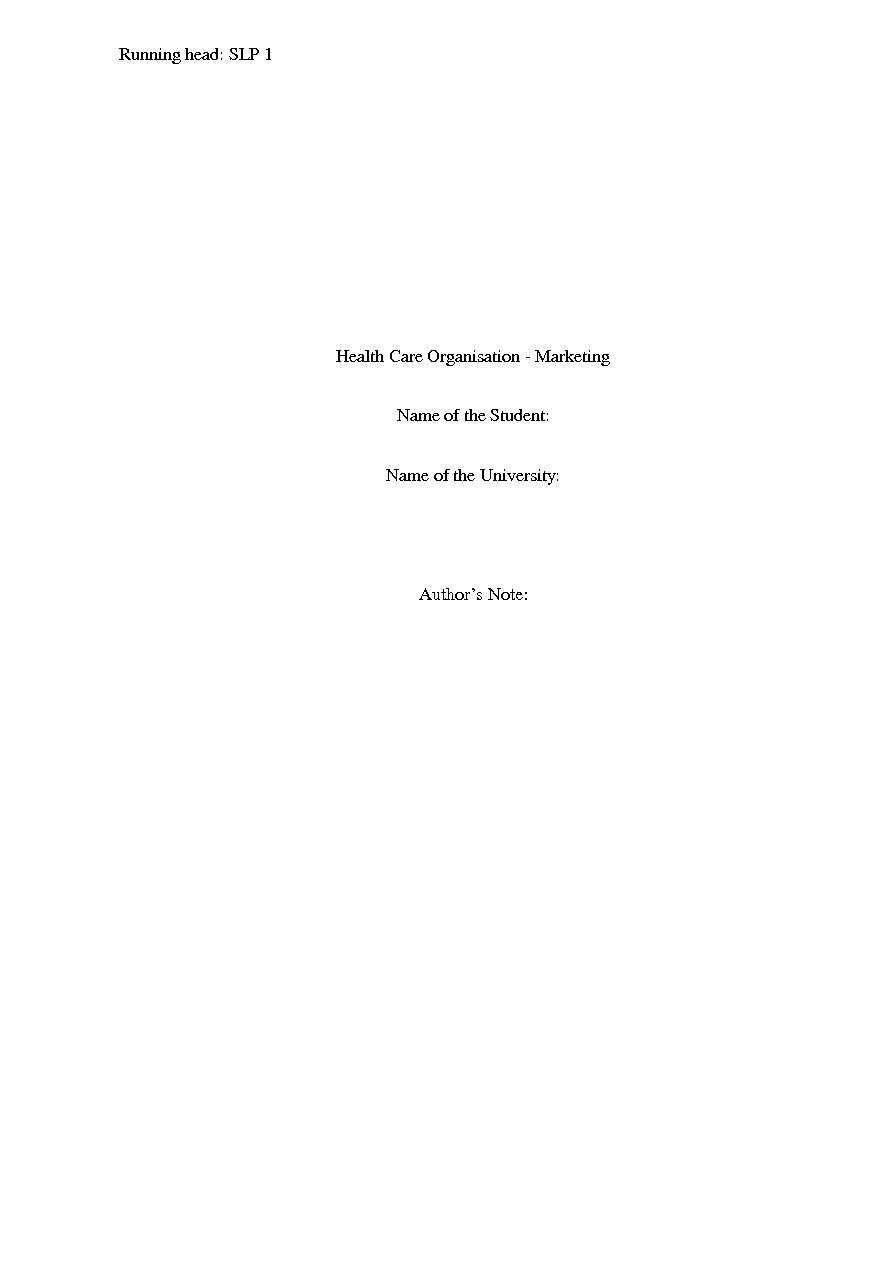 "Running head: SLP 1Health Care Organisation - MarketingName of the Student:Name of the University:Author’s Note: Module- SLP 1 1Introduction to Marketing and Non-Profit MarketingThe objective of this essay is to discuss the main challenges faced whi..