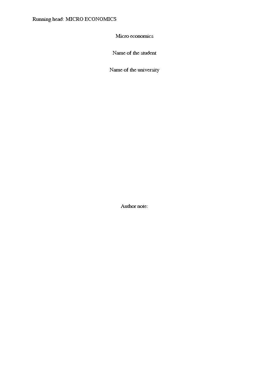 "Running head: MICRO ECONOMICSMicro economicsName of the studentName of the universityAuthor note:MICRO ECONOMICS1Table of ContentsAnswer to question number 1: ............................................................................................