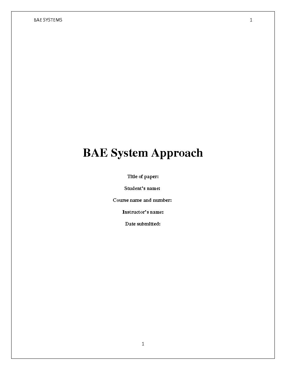 "BAE SYSTEMS1BAE System ApproachTitle of paper:Student’s name: Course name and number: Instructor’s name:Date submitted: 1 BAE SYSTEMS2ContentsPART 2 ......................................................................................................