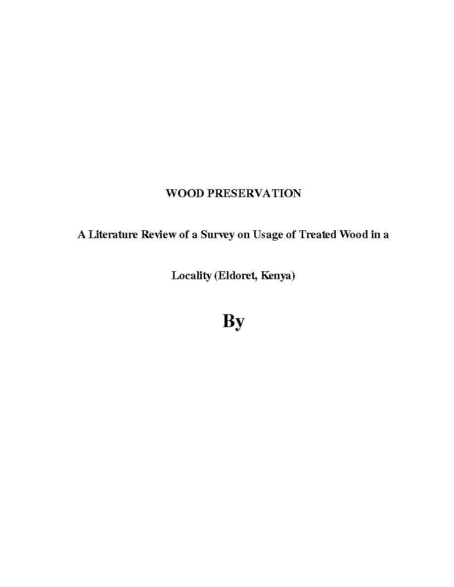 "WOOD PRESERVATIONA Literature Review of a Survey on Usage of Treated Wood in aLocality (Eldoret, Kenya)ByTable of ContentsIntroduction ....................................................................................................................