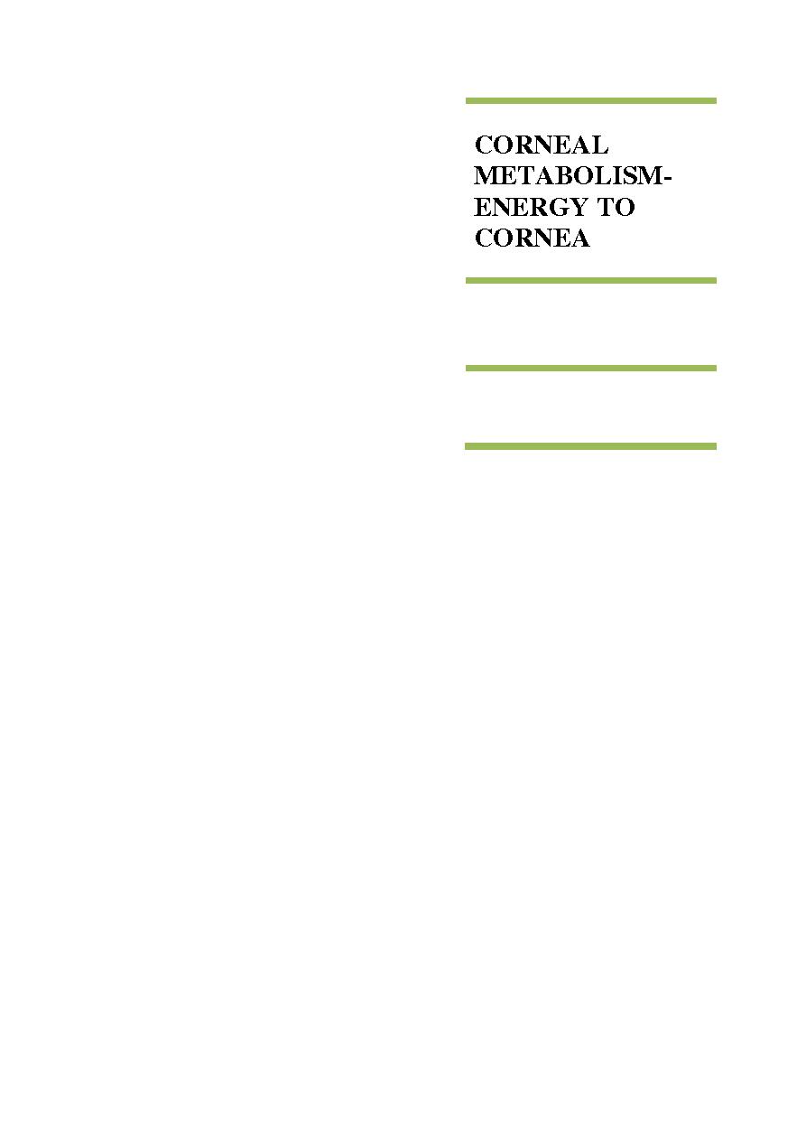 "CORNEAL METABOLISM- ENERGY TOCORNEACORNEAL METABOLISM-ENERGY TO CORNEAEpitheliumCornea is exposed to the different external environment so the metabolism is carried outunder a broad range of temperatures. The average temperature of the human cornea ..