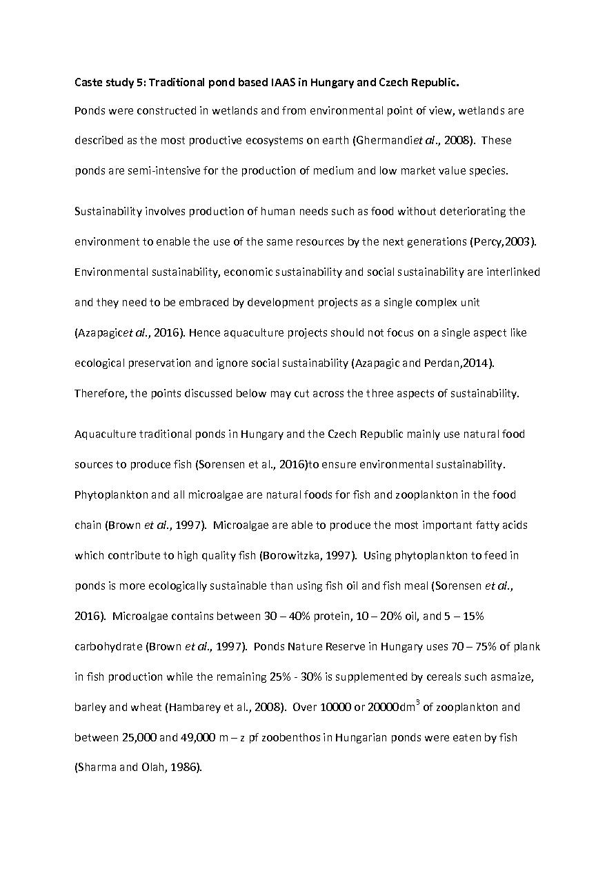"Caste study 5: Traditional pond based IAAS in Hungary and Czech Republic.Ponds were constructed in wetlands and from environmental point of view, wetlands aredescribed as the most productive ecosystems on earth (Ghermandiet al., 2008).Theseponds are..
