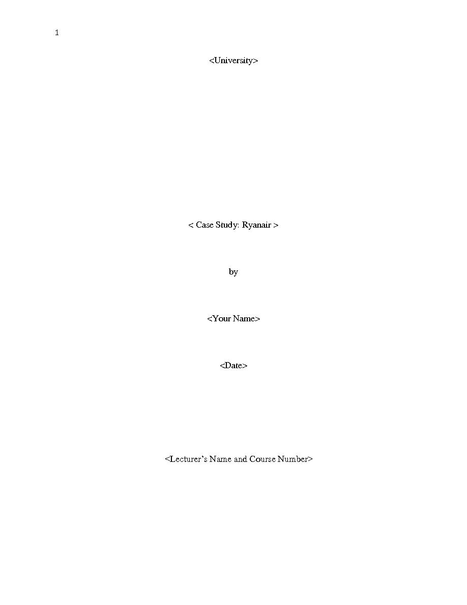 "1<University>< Case Study: Ryanair > by<Your Name> <Date> <Lecturer’s Name and Course Number> 2Table of ContentsIntroduction ................................................................................................