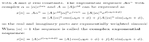 The exponential sequences are significant for analysing and representing discrete-time systems. The general form is
