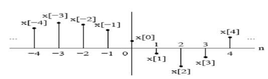 For this very reason, although x[n] is the nth number in the sequence, we refer to it as nth sample. We also refer to the sequence x[n]" when we mean the whole sequence. Discrete-time signals are depicted graphically as follows: