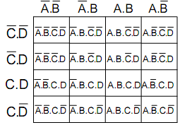 4-variable K-maps have 16 squares which arearranged in 4 columns and 4 rows.