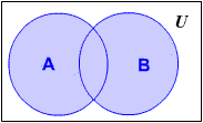 The union of two sets A and B, written , is the set of all elements which are in set A or in set B. This can be written as A U B = { x| x ∈ A or x ∈ B }.