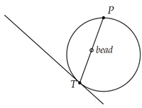 ramp at point T. A wire from the top to the point of tangency will provide the least time. Why? Because every other path from the point will touch the hoop at the same time, but the wire chosen is the only one which will have reached the plane in this time.