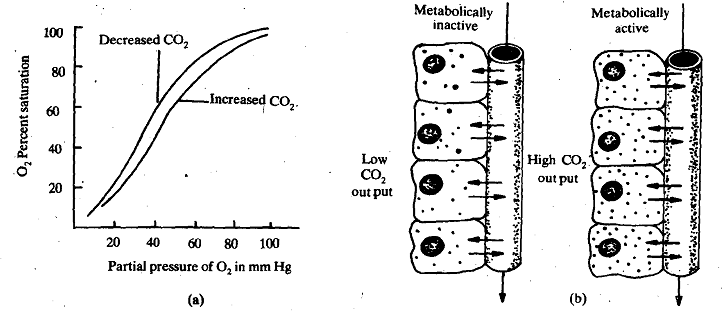 Therefore, as carbon dioxide enters the blood from respiring tissues it encourages the release of more oxygen. This is an important characteristic because it allows more oxygen to be released to tissue which need it the most. More oxygen is loaded in the lungs and more unloaded at the tissues due to Bohr effect than would be the case if only diffusion along the concentration gradient was responsible.