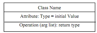 The notation for class, attribute, and operations are shown below: