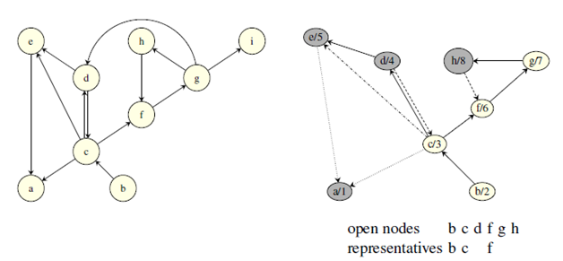 DFS creates a node when it First discovers it; started all nodes are unmarked. The main loop of DFS seems for unmarked nodes s and calls DFS(s; s) to lead a tree rooted at s. The genuine call DFS(u; v) extends all edges (v;w) out of v. The argument (u; v) display that v was reached via the edge (u; v) into v. For root nodes s, we need the .dummy. argument (s; s). We display DFS(¤; v) if the special nature of the incoming node is irrelevant for the discussion at hand. Assume now that we explore edge (v;w) within the fact DFS(¤; v). If w has been seen after, w is a node of the DFS-tree. So (v;w) is not a tree node and hence we create traverseNonTreeEdge(v;w) and prepare no recursive call of DFS. If w has not been given before, (v;w) converts a tree edge. We therefore call traverseTreeEdge(v;w), mark w and create the recursive call DFS(v;w). When we return from this call we include the next edge out of v. Once all edges out of v are included, we call backtrack on the incoming edge (u; v) to operate any summarizing or clean-up operations return and required.