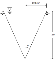 A conical water tank of height 2 metres & base radius 500 mm is supported at top and is full of water. The thickness of the wall is refer to 24 mm, determine the maximum hoop and meridional stress.