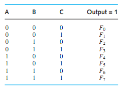 Q. A table for the direct 3-bit binary decoding is given. Show a block diagram for a 3-to-8 decoder and suggest a method for its implementation.