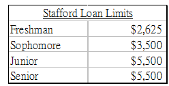 Consider Gavin, a new freshman who has just received a Stafford student loan and started college. He plans to obtain the maximum loan from Stafford at the beginning of each year. Although Gavin does not have to make any payments while he is in school, the 7 percent interest owned (compounded monthly) accrues and is added to the balance of the loan.