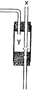 Some skill is needed to construct the ordinary glass filter pump, but it is possible to contrive one from glass tubing and good corks. The action of the pump depends on the principle that a jet of water directed down a narrow tube carries air with it and decreases the pressure of the air in the vicinity (Y).