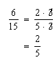 Important: The bottom polynomial can never be zero, because division by zero is undefined!To simplify or reduce a fraction such as 6/15, you must first factor the numerator and denominator, and then you can eliminate, or cross out, the common factors.