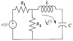 a. Find the differential equation assuming that v(t) is the input and the charge on the capacitor q(t) is the output. Hints: iR1= (iR2 + iL), iR2 = (vL + vC) / R2, iL = iC = dq/dt and page 114.