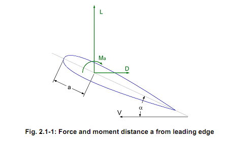 The flow-field around an aircraft results in a pressure distribution that in turn gives rise to a normal pressure force and a surface shear force distribution. Just as with any system of forces, these complex force distributions can be represented by a simple equivalent force system that provides: 1. An identical resultant force; 2. An identical moment. (Identical about any point.) Furthermore, the resultant aerodynamic force can be resolved into lift, drag, and (in asymmetric flight) side-force components; see Fig. 2.1-1. The flow also produces a resultant moment about any given point, e.g. ‘a' in Fig. 2.1-1. This is denoted Ma. The moment about a different point would or course be different.