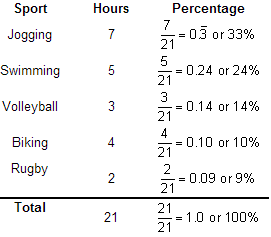 Example: Jennifer keeps track of the different types of sports activities she does within a week.