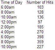 Solution: To draw a line graph of the above information, first decide on the axes. Let the x-axis be the time of day and the y-axis be the number of hits. Then draw dots at the proper places on your graph.