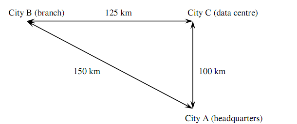 A new bank has its headquarters located in City A. Recently, the bank has opened its first branch in City B, and its data centre in City C. The three cities are separated apart over a long distance between them, as illustrated in Figure A. The headquarters and data centre have been internally networked already. The data centre maintains important and confidential data of the clients and bank.