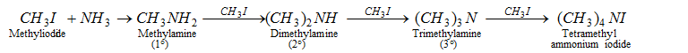 Hofmann's method: The mixture of amines (1°, 2° and 3°) is made by the alkylation of ammonia along with alkyl halides.