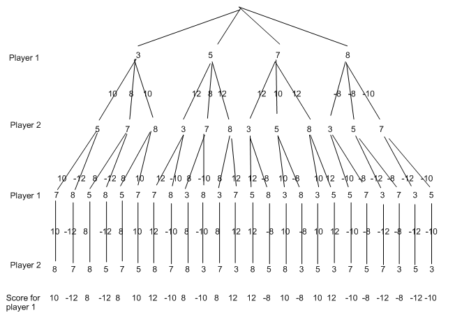 In the direction of choose the correct first card, well there would player one purely looks next to the topmost edges of the final tree and chooses the one with the highest score. In fact in this generally, there is alternate choosing the 7 will certification player one scores 10 in this game we can assuming that player one chooses according to such the minimax strategy just to move 2, but - importantly - making no assumptions worry for how player two will choose.