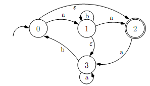 To see how this works, lets carry out an example. For maximum generality, let's start with the NFA with ε-transitions given above, repeated here: