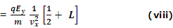 where ay = qEy/m ; y and vy at t = 0 are zero. In the same time t, particle moves a distance x along x along X-axis with constant initial velocity vx i, so that