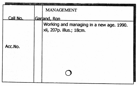 Note that in this type of brief added entry, only the Call Number, author, title and year of publication are given. Sometimes even the year is omitted. The main line is now occupied by the added entry element but this element starts from the second indention, which indicates that the entry is not a main entry.