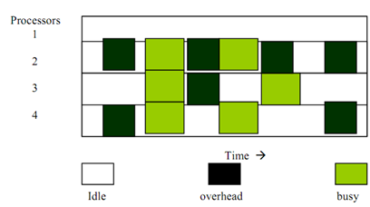 The Utilization Count shows the status of each processor in a specific mode i.e. Overhead mode, busy mode, and idle mode with respect to the progress in time as shown in Figure.