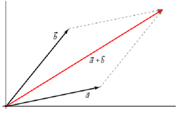 The following diagram gives the geometric interpretation of the addition of two vectors.