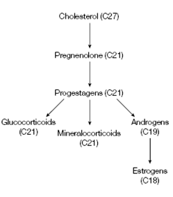 Figure: Biosynthetic pathway for the synthesis of the steroid hormones.