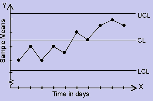 On plotting a chart by taking time variable (in days) on axis and the sample means on Y-axis, we get a chart which is called as